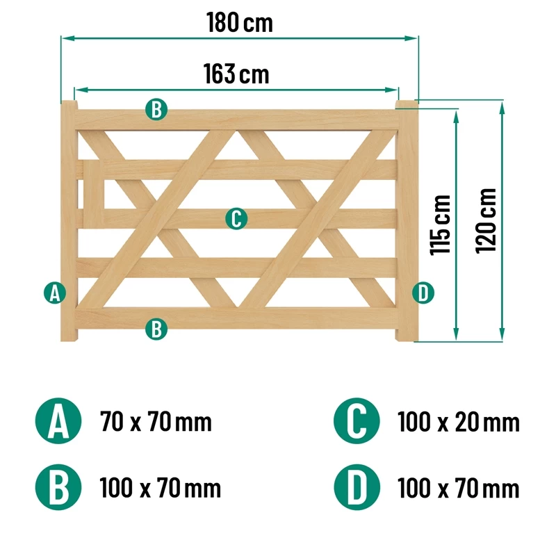 - VOSS.farming Englisches Holztor, Holz-Weidetor, Koppeltor 180cm, 122cm hoch