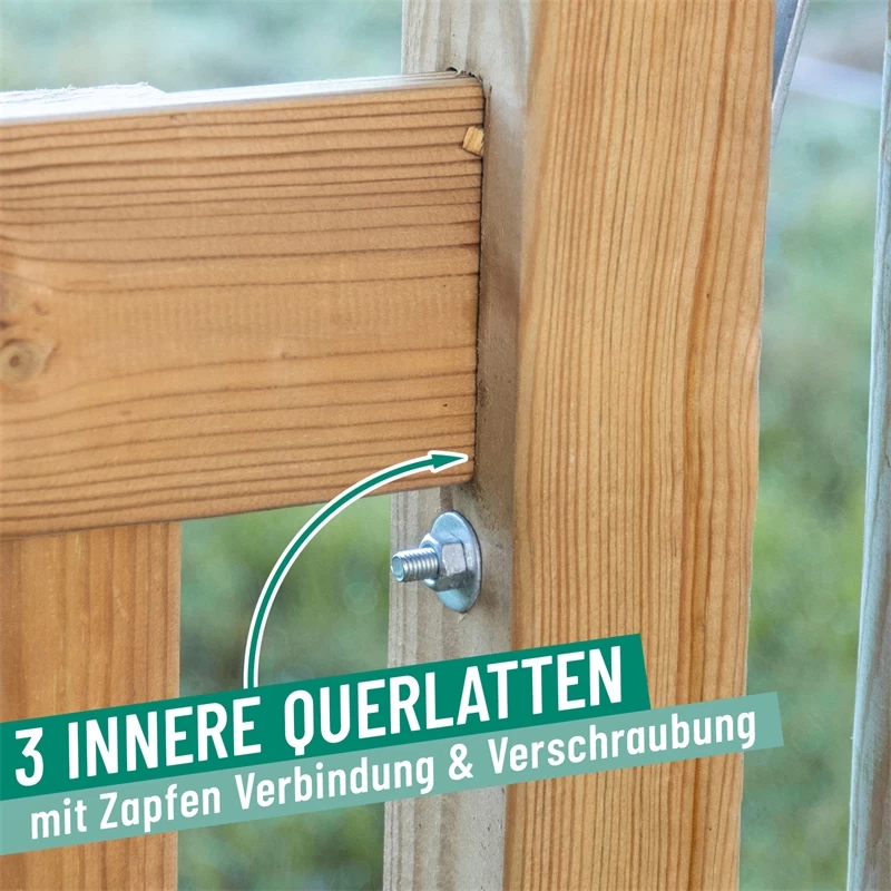 - mit drei inneren Querlatten mit Zapfenverbindung & Verschraubung