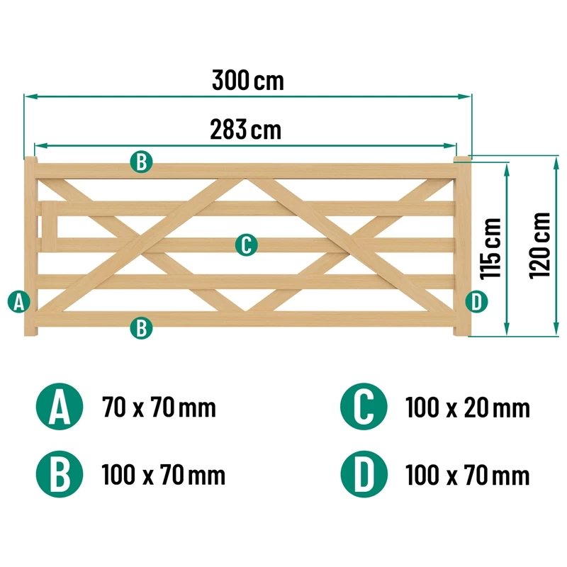 VOSS.farming Englisches Holztor, Holz-Weidetor, Koppeltor 300cm, 122cm hoch