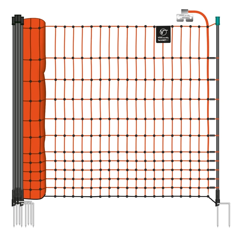 - 1x VOSS.farming® farmNET® 25m Geflügelnetz, 112cm, 9 Pfähle, 2 Spitzen, orange