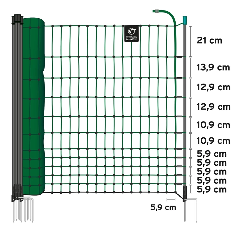 Unsere innovativen Netze aus der VOSS.farming® farmNET®-Serie. Preis, Leistung und Qualität gehen hier Hand in Hand. Das standfeste 112cm hohe Geflügelnetz hat eine Länge von 25 Metern, was die Einzäunung von kleinen Flächen, kurzen Strecken oder Durchgängen schnell und einfach möglich macht. Das Netz muss nicht per Hand gekürzt werden und man muss keinen Teil des Zauns aufgerollt lassen.