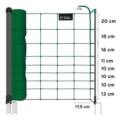 - 1x VOSS.farming® farmNET® 50m Schafnetz, 108cm, 14 Pfähle, 2 Spitzen, grün