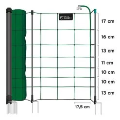 - 1x VOSS.farming® „farmNET®+“ 50m Schafnetz, 90cm, 20 Pfähle, 2 Spitzen, grün