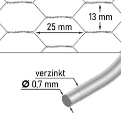 Das Sechseckgeflecht eignet sich für viele verschiedene Einsatzbereiche rund um Haus und Hof, z. B. als Garten- oder Kleintierzaun, Hühner- oder Kükendraht, Hasen- und Meerschweinchenzaun. Der Drahtzaun eignet sich als Umzäunung für Beete, zum Schutz von Setzlingen oder jungen Bäumen sowie als Rankgitter. Die enge Maschenweite von 13mm schützt Pflanzen und Wurzeln auch vor tierischen Eindringlingen.