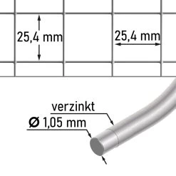 - 1x 10m VOSS.farming Volierendraht, Drahtgitter, Höhe 100cm – 25,4×25,4×1,05mm, verzinkt