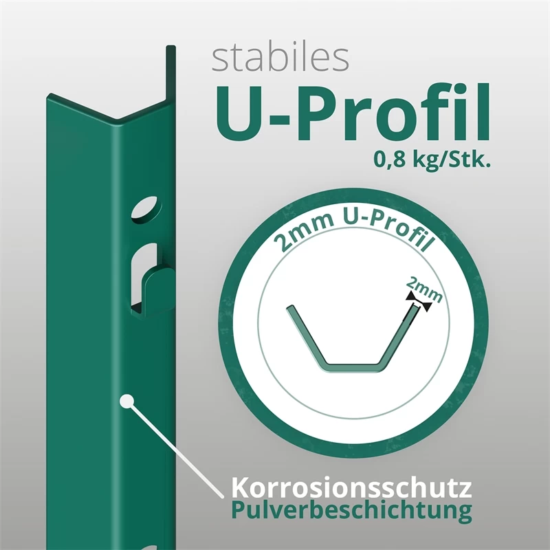 - 8x VOSS.farming U-Profil Metall-Pfähle, Zaunpfosten für Drahtgeflecht 137cm