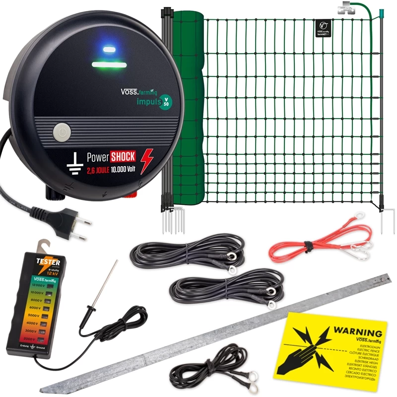 VOSS.farming® Geflügelnetz Komplett Set: 50m Netz & 230V Weidezaungerät