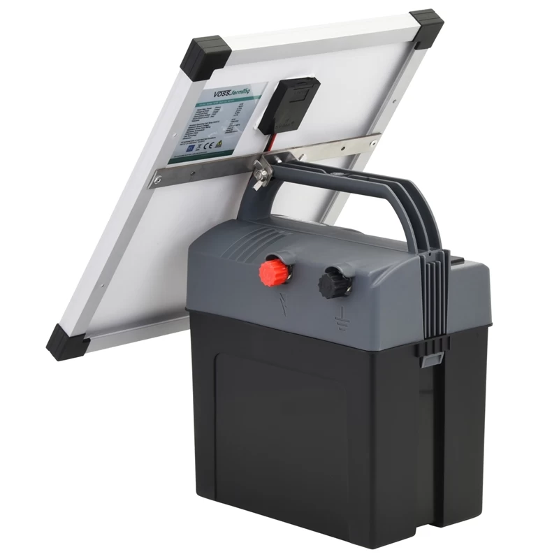 VOSS.farming „KAPPA 7 SOLAR“, starkes Weidezaungerät komplett mit 12 Watt Solarmodul + 12 Volt Blei-Vlies-Akku 12Ah
