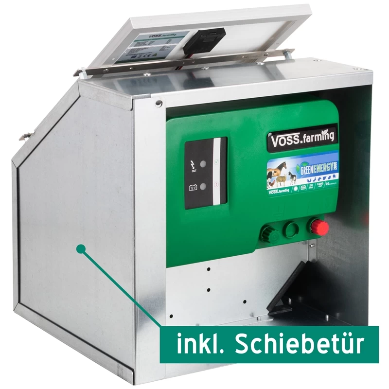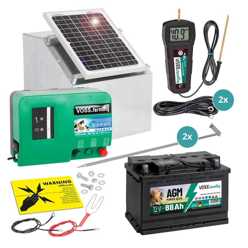 - 1x VOSS.farming Set: 12W Solarsystem + 12V Weidezaungerät GreenEnergy + Box