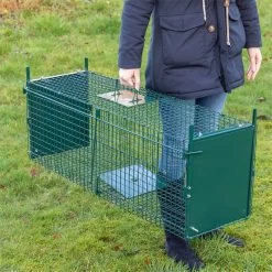 Mit dieser hochwertigen Kastenfalle lassen sich lebend Wildtiere wie Jungfüchse, Marder, Hasen, Marderhund, Illtise oder Waschbären einfangen. Für kleinere Tiere empfehlen wir Ihnen die Kastenfalle Art.Nr. 531020.