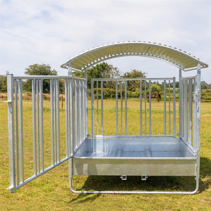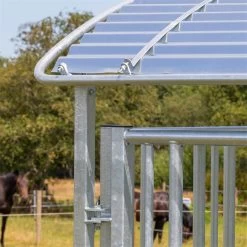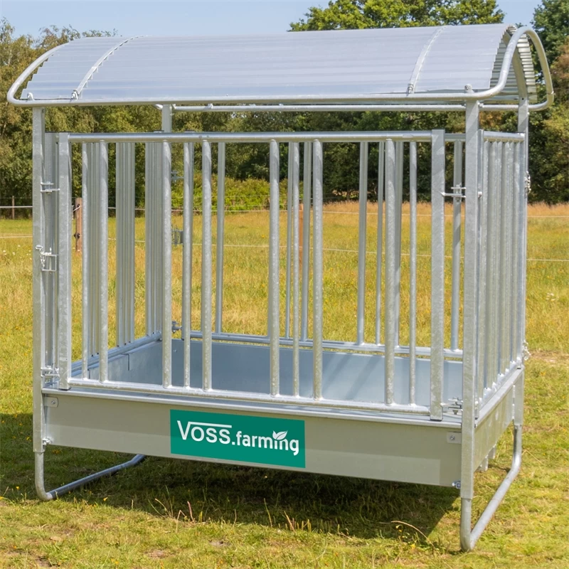 VOSS.farming Pferde-Viereckraufe, Rundballenraufe mit Dach und Fressgitter, höhenverstellbar