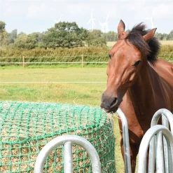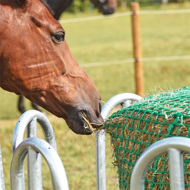 Um dies zu verhindern, sollten Sie den Heuballen mit einem Rundballennetz abdecken. Die enge Maschenweite von 4,5 x 4,5cm sorgt dafür, dass Ihr Tier nur so viel Futter aus dem Ballen zieht, wie es auch kauen kann. Außerdem sorgt es dafür, dass das Tier ruhig und entspannt frisst.