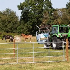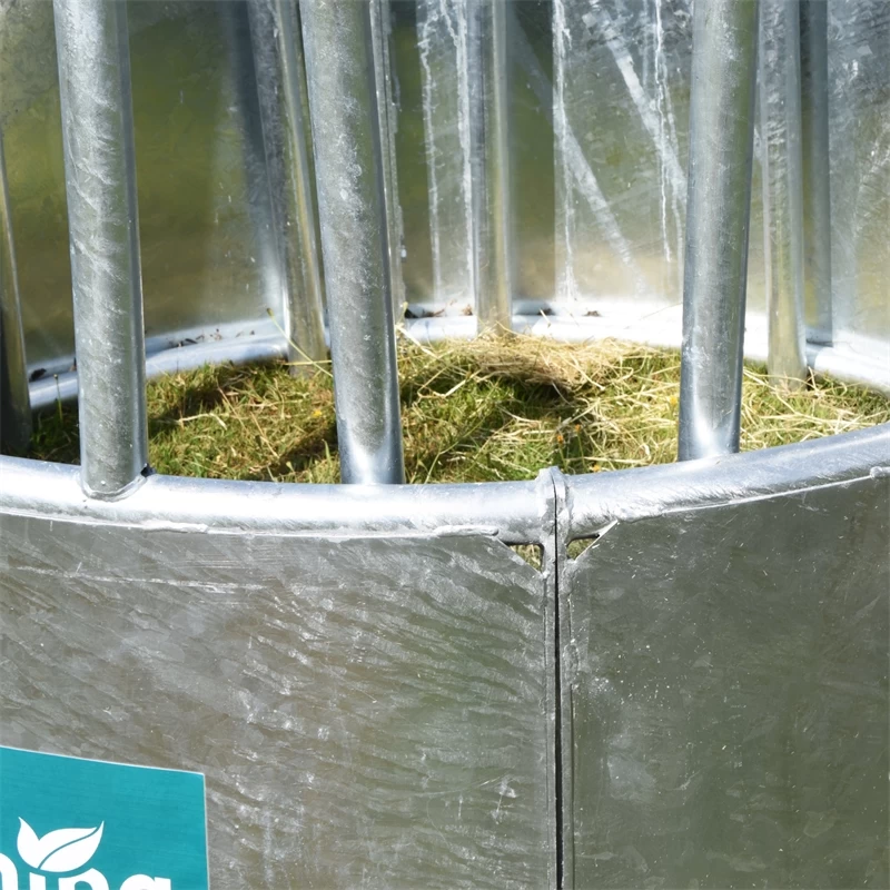 Die einfache Handhabung und die hochwertige Qualität sind überzeugend. Die Lieferung erfolgt als Bausatz in vier Teilen, die sogar in einem PKW-Kombi transportiert werden können. Das Befüllen erfolgt wahlweise mit dem Frontlader Ihres Traktors oder indem Sie die Rundraufe aufklappen und das Heu von Hand einlegen oder einrollen. Durch die praktische Bauweise lassen sich im Außenbereich oder in Laufställen mit den Segmenten auch Wand- bzw. Eckraufen einrichten. Für eine lange Lebensdauer ist die Rundraufe komplett feuerverzinkt.