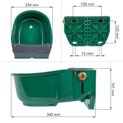 Die Tränke aus hochwertigem Kunststoff ist robust und langlebig. Durch einen Ablaufstopfen im Tränkebecken ist die Reinigung einfach und effektiv. Die Kanten sind abgerundet, um das Risiko einer Verletzung Ihres Tieres zu verringern. Eine Montage im Stall oder auf der Weide ist möglich. Die Selbsttränke kann an der Wand oder direkt am Rohr montiert werden und der Wasseranschluss von 1/2 Zoll ist von links und rechts möglich. Der Wasserdurchfluss ermöglicht Ihrem Tier die maximale Trinkmenge von ca. 6,5 Litern pro Minute.