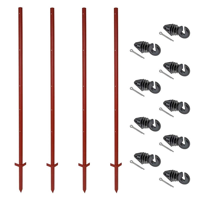 40x Winkelstahlpfahl 165cm, 3mm + 200x Ringisolator mit Splint