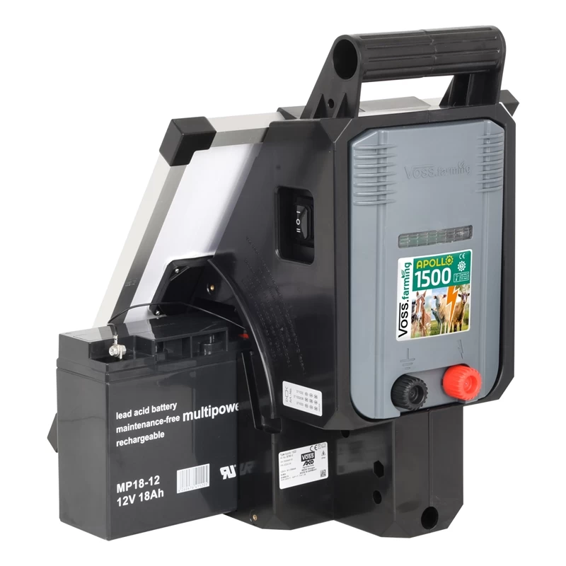 VOSS.farming Solar Weidezaungerät „Apollo 1500“ – Komplettset! inkl. 15W Solarmodul + 12V Akku + Ladegerät!