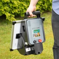Die kompakte Bauweise und der praktische Tragegriff machen das Weidezaungerät „Apollo 1500“ von VOSS.farming ideal für den mobilen Weidezauneinsatz.