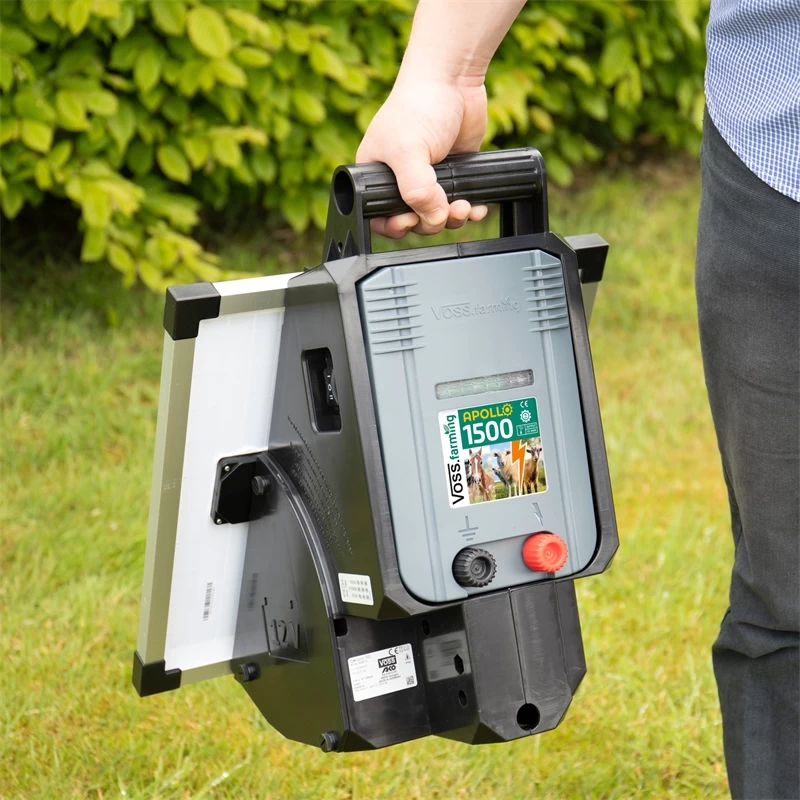 Mit dem „Apollo 1500“ von VOSS.farming erhalten Sie ein starkes Solar-Weidezaungerät für normale Zaunanlagen mit wenig Bewuchs.