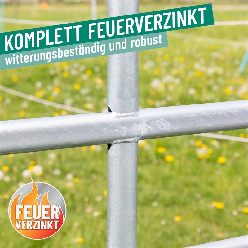 Durch den komplett feuerverzinkten Stahl sind die Weidepanels sehr langlebig. Trotz des geringen Gewichts sind Panels sehr stabil und bieten daher vielseitige Möglichkeiten. Das mobile System von VOSS.farming ermöglicht flexible Problemlösungen auf der Weide oder im Stall.