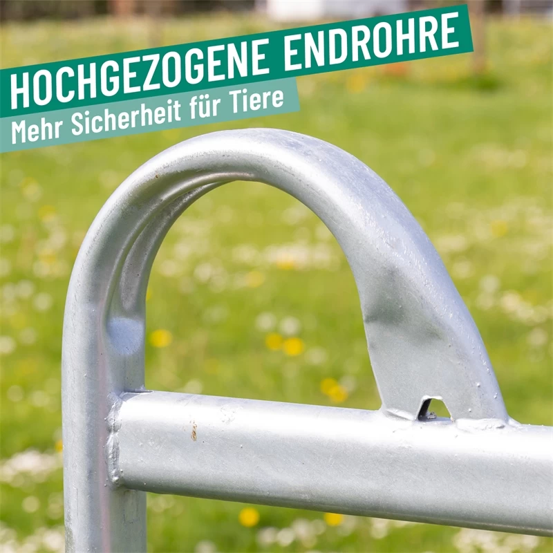 - durch hochgezogene Endrohre können die Beine von aufspringenden Tiere nicht zwischen die Panels rutschen