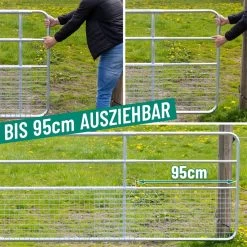 Mit unserem verstellbaren Weidetor mit Gitter erhalten Sie einen bequemen Zugang zur Weide. Das Tor bietet ein hohes Maß an Stabilität, Wetterbeständigkeit und Langlebigkeit. Durch das Gitter im unteren Bereich eignet sich das Tor speziell für kleinere Tiere wie Schafe und Jungvieh.