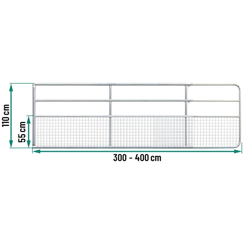 VOSS.farming Weidetor verstellbar 300 – 400 cm, mit Gitter, 110 cm hoch, verzinkt