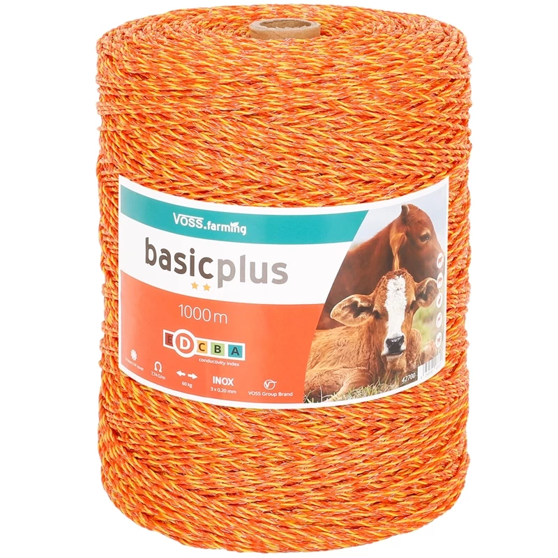 Die seit Jahren in der Praxis beliebte Weidezaunlitze aus dem Hause VOSS.farming in gelb-oranger Warnfarbe gibt es bei uns jetzt auch in einer Länge von 1000m. 3 Edelstahlleiter gewährleisten einen sicheren Stromfluss, so dass kleine und leicht zu hütende Tiere sicher eingezäunt werden können.