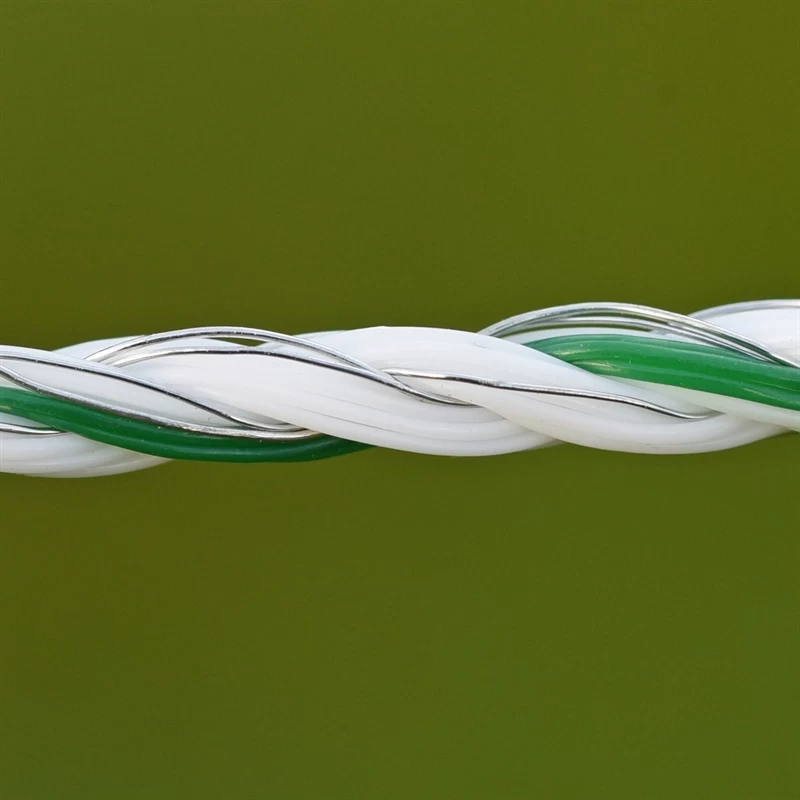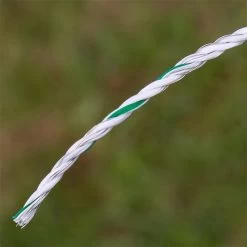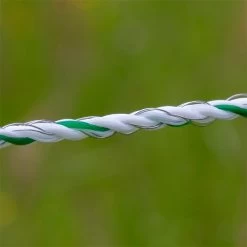 Diese grün-weiße Weidezaunlitze von VOSS.farming eignet sich für lange und schwierige Einzäunungen. Die dicken PE-Fäden mit 3 Edelstahl- und 3 Kupfer-Leitern sorgen für eine hohe Leitfähigkeit. Dadurch ist die Litze auch sehr gut zur Wildabwehr geeignet. Die Leiterbündel – jeweils ein Edelstahlleiter und ein Kupferleiter – sorgen für eine konstant hohe Hütespannung in der Zaunanlage.