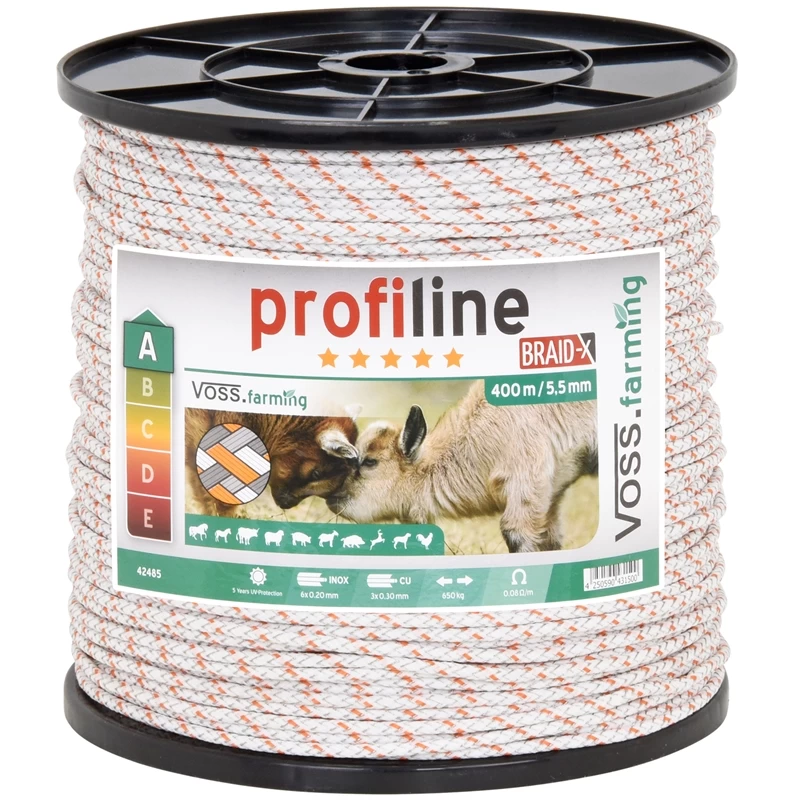 - 1 x VOSS.farming Weidezaun-Seil BRAID-X 400 m, 6 x 0,20 Niro + 3 x 0,30 Kupfer, weiß/orange