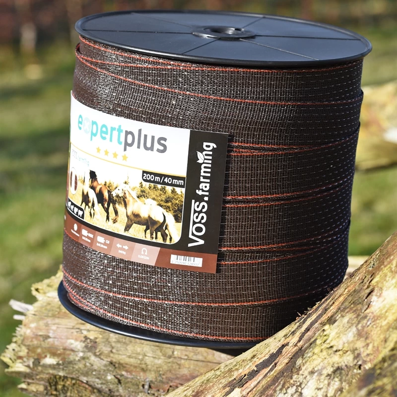 - 1x VOSS.farming Weidezaunband 200 m/40 mm, 2 x 0,3 Kupfer + 8 x 0,3 Niro, braun-orange