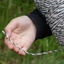 Die weiß-schwarze Litze von VOSS.farming eignet sich für lange und schwierige Einzäunungen. Die dicken PE-Fäden mit 3 Edelstahl- und 3 Kupfer-Leitern sorgen für eine hohe Leitfähigkeit. Dadurch ist die Litze auch sehr gut zur Wildabwehr geeignet. Die Leiterbündel – jeweils ein Edelstahlleiter und ein Kupferleiter – sorgen für eine konstant hohe Hütespannung in der Zaunanlage.
