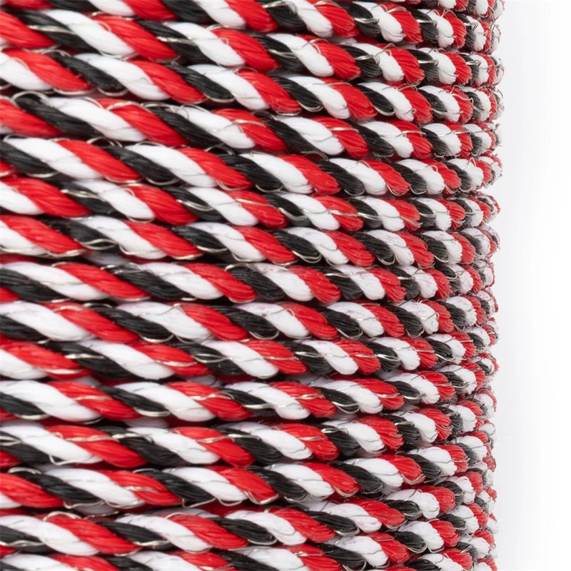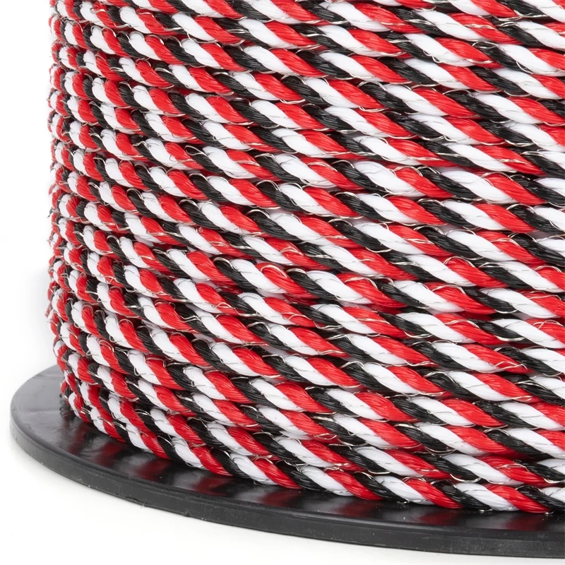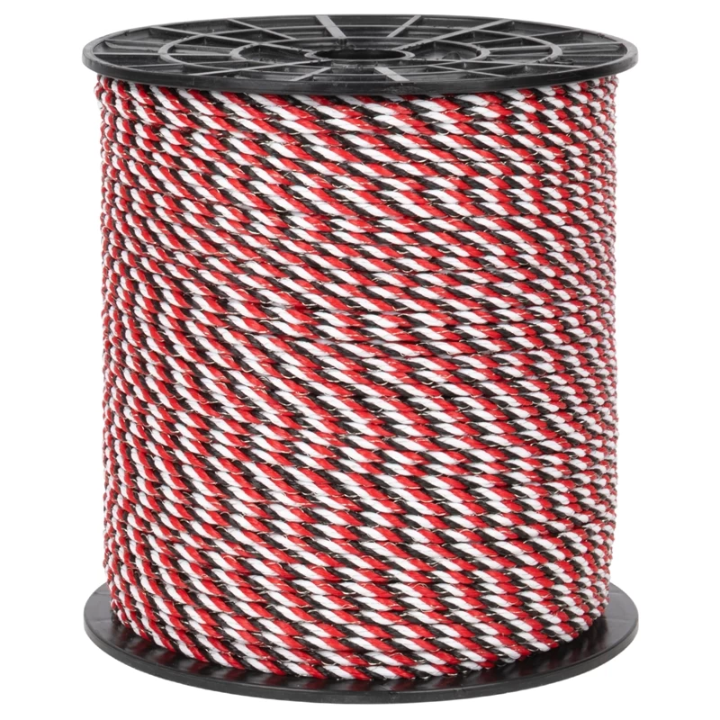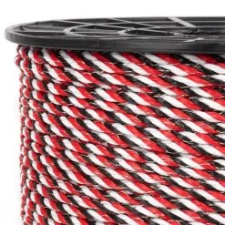 - 1x VOSS.farming Weidezaunseil 400m, 3×0,25 Kupfer + 3×0,25 Niro, weiß/rot/schwarz