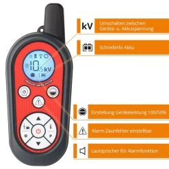 - Alle wichtigen Informationen Ihres Zaunes auf der Fernbedienung ablesbar