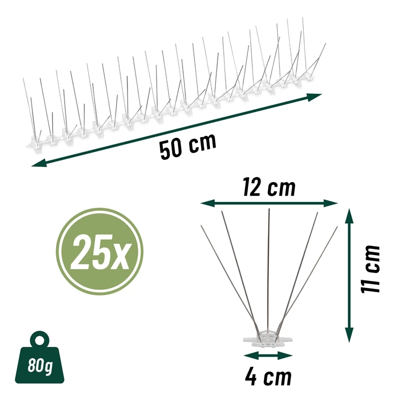 - 12,5m langes Set mit 25x Bird Spikes/Elementen zu je 50cm Länge