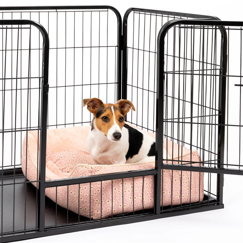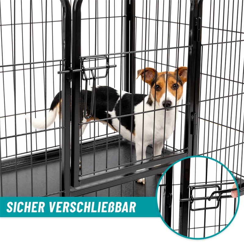 Für einen geschützten Auslauf im Garten oder als sicherer Rückzugsort im Haus – das Freilaufgehege eignet sich sehr gut zur Haltung von Welpen, Jung- und Kleintieren