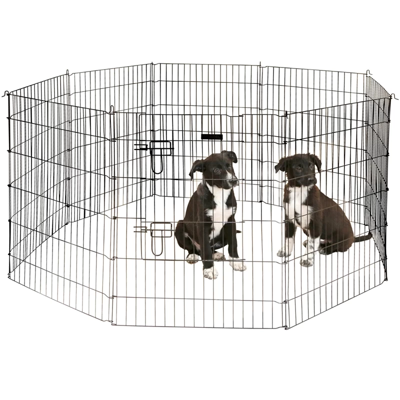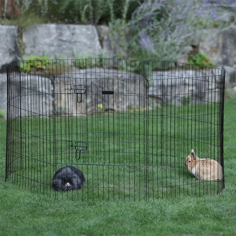 Das Set besteht aus pulverbeschichtetem Metall, hat einen Durchmesser von 143cm und einen Gitterabstand von 3cm. Vor der Verwendung muss der Gitterabstand fĂŒr das jeweilige Kleintier geprĂŒft werden.