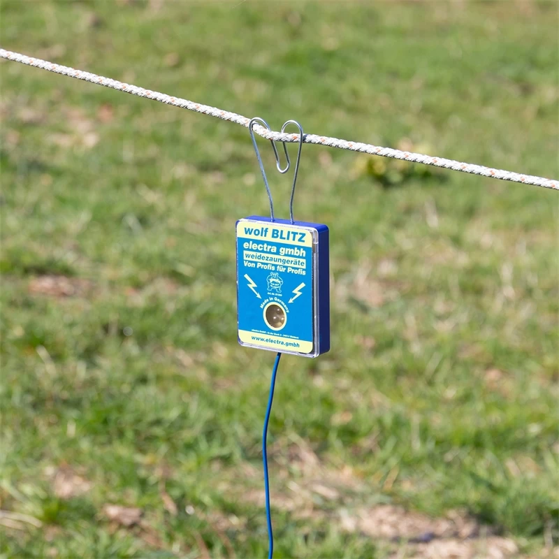 Das GerĂ€t ist einfach zu bedienen und erfordert keine Batterien. Es kann einfach in den Zaun eingehĂ€ngt werden und ist sogar auf groĂer Entfernung sichtbar. FĂŒr eine optimale Wirksamkeit empfehlen wir, das GerĂ€t an mehreren Stellen des Zaunes anzubringen, um die Sichtbarkeit fĂŒr den Wolf zu gewĂ€hrleisten.